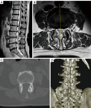 Immediately after the procedure, the patient mentioned that lower back and radicular pain in the anterior aspect of her right leg had completely disappeared. Postoperative MRI and CT revealed an expanded lumbar canal at L3–4 and decompression of the right L4 nerve root (Figure 3A-3D). The patient was discharged without any perioperative complications. No recurrence was observed for at least 3 months postoperatively. All procedures performed in this study were in accordance with the ethical standards of the institutional and/or national research committee(s) and with the Helsinki Declaration and its subsequent amendments. Written informed consent was obtained from the patient for publication of this case report and accompanying images. A copy of the written consent is available for review by the editorial office of this journal.
