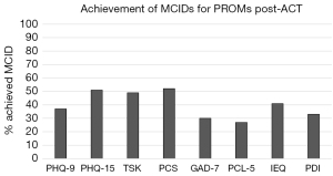 | PROM | Construct | Pre-ACT | Post-ACT | Change | P value | MCID | Achieved MCID |