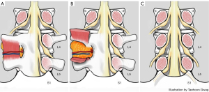 - Phan K, Dunn AE, Rao PJ, et al. Far lateral microdiscectomy: a minimally-invasive surgical technique for the treatment of far lateral lumbar disc herniation. J Spine Surg 2016;2:59-63. [Crossref] [PubMed]
