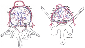 • The blood supply to the L1 vertebral body in Wistar rats closely resembles that of humans. This similarity suggests Wistar rats could be a valuable model for studying vascularization and vertebral body ischemia in various pathological conditions.