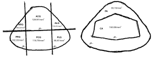 ACQ, anterior center quadrant; ALQ, anterior left quadrant; AR, anterior region; ARQ, anterior right quadrant; CA, central area; CR, central region; LR, left region; PA, peripheral area; PCQ, posterior center quadrant; PLQ, posterior left quadrant; PR, posterior region; PRQ, posterior right quadrant; RR, right region.