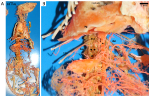 To address the question of whether injury to the vertebral intraosseous arterial microvascularization following a fracture can influence or predict the bone healing capacity of the vertebral body, we must start from the beginning. Therefore, this study aims to conduct a detailed analysis of the vascular anatomy of the L1 vertebral body in the Wistar rat. The objective is to examine the vascularization of one of the vertebrae most frequently affected by burst fractures and post-traumatic vertebral necrosis in humans using a well-established and easily accessible animal model, the Wistar rat. This will allow for a comparison of its vascular structure with previously studied human anatomy in order to identify similarities and differences (1-7,9). Ultimately, the goal is to determine whether the Wistar rat can serve as a suitable model for research on vertebral body blood supply, particularly in studies investigating the progression of burst fractures toward healing or nonunion. Additionally, understanding the vascular anatomy of the L1 vertebral body in Wistar rats and its potential similarities to human anatomy could facilitate further research in various areas. This includes studying the pathways of metastatic cell and septic emboli dissemination, the pathophysiology of vertebral osteomyelitis, the development of hemangiomas and other vascular tumors, congenital spinal anomalies such as scoliosis or hemivertebrae, and even degenerative disc disease, among other conditions (33,34). We present this article in accordance with the ARRIVE reporting checklist (available at https://jss.amegroups.com/article/view/10.21037/jss-25-41/rc).