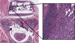 - Girolami M, Sartori M, Monopoli-Forleo D, et al. Histological examination of a retrieved custom-made 3D-printed titanium vertebra : Do the fine details obtained by additive manufacturing really promote osteointegration? Eur Spine J 2021;30:2775-81. [Crossref] [PubMed]